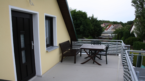 Auf einer ca. 13 qm großen Terrasse können Sie Ihr morgentliches Frühstück bei Sonnenschein genießen oder den Abend ausklingen lassen. Gartenmöbel und ein Sonnenschirm stehen dazu zur Verfügung.