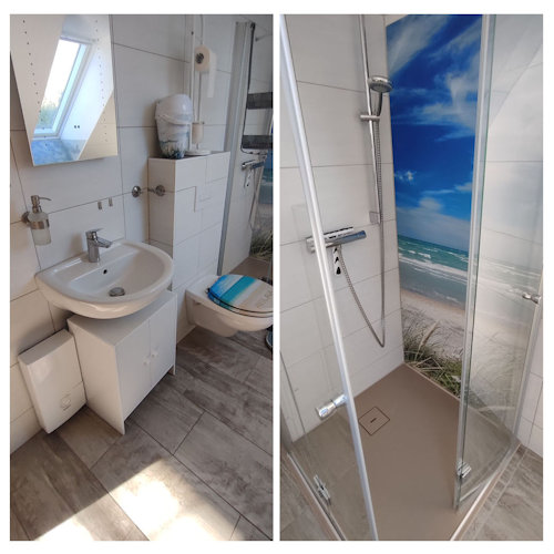 Das Bad verfügt über ein WC, eine Duschkabine und ein Haartrockner ist ebenfalls vorhanden. Handtücher für Ihren persönlichen Bedarf bringen Sie bitte selbst mit.